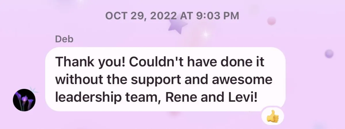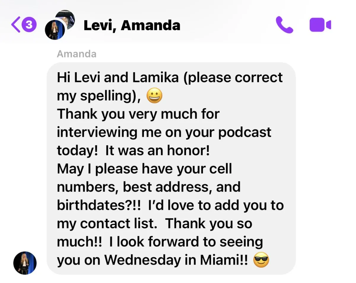 “You are loved massively. You are valued massively! Keep implementing and creating collaborative partners to get you where you need and want to be faster.. Love you both Levi & Lamika Rene!”