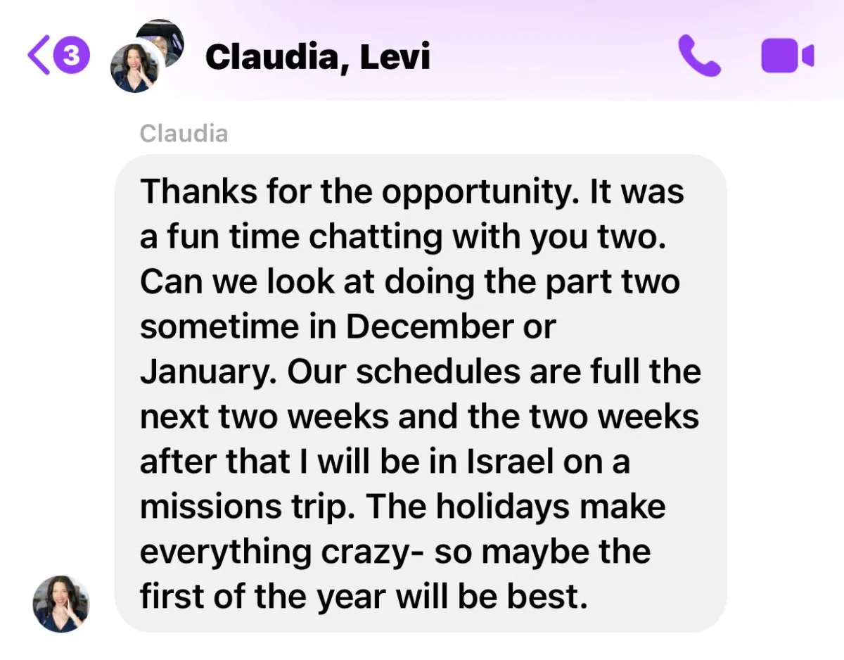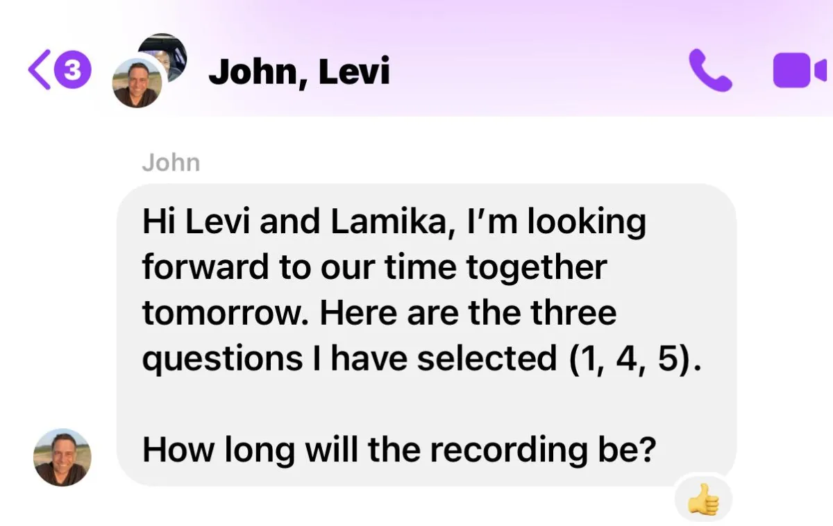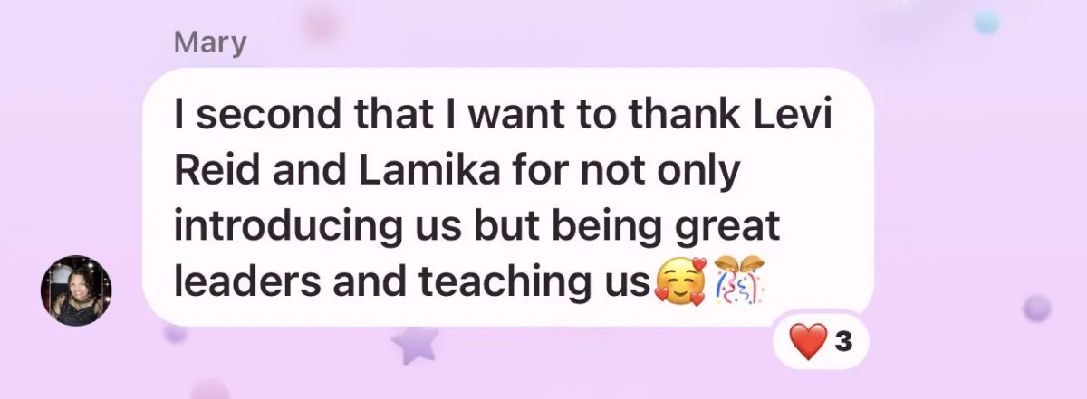 “Yesterday was one of the best zooms the growth is so exciting. Levi & Lamika I felt your heart!”