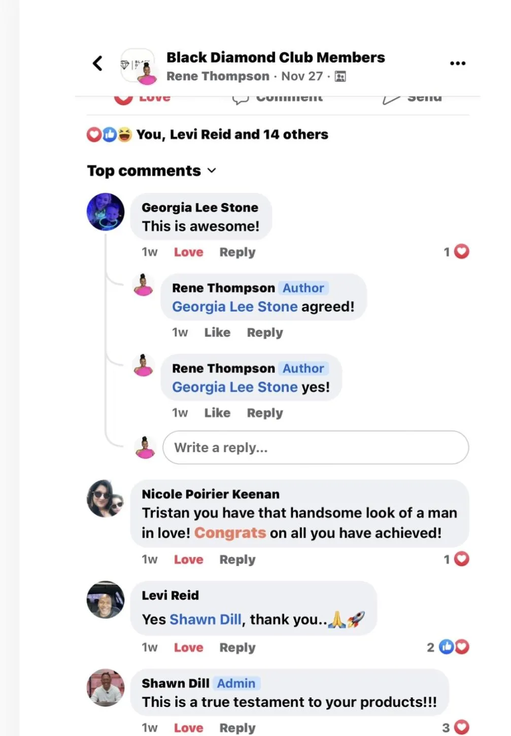 “I really enjoy Levi & Lamika's content. They are training and showing me how to grow my business using Facebook and all social media platform. I feel confident enough to put together a daily method of operation using the training I have learned!”